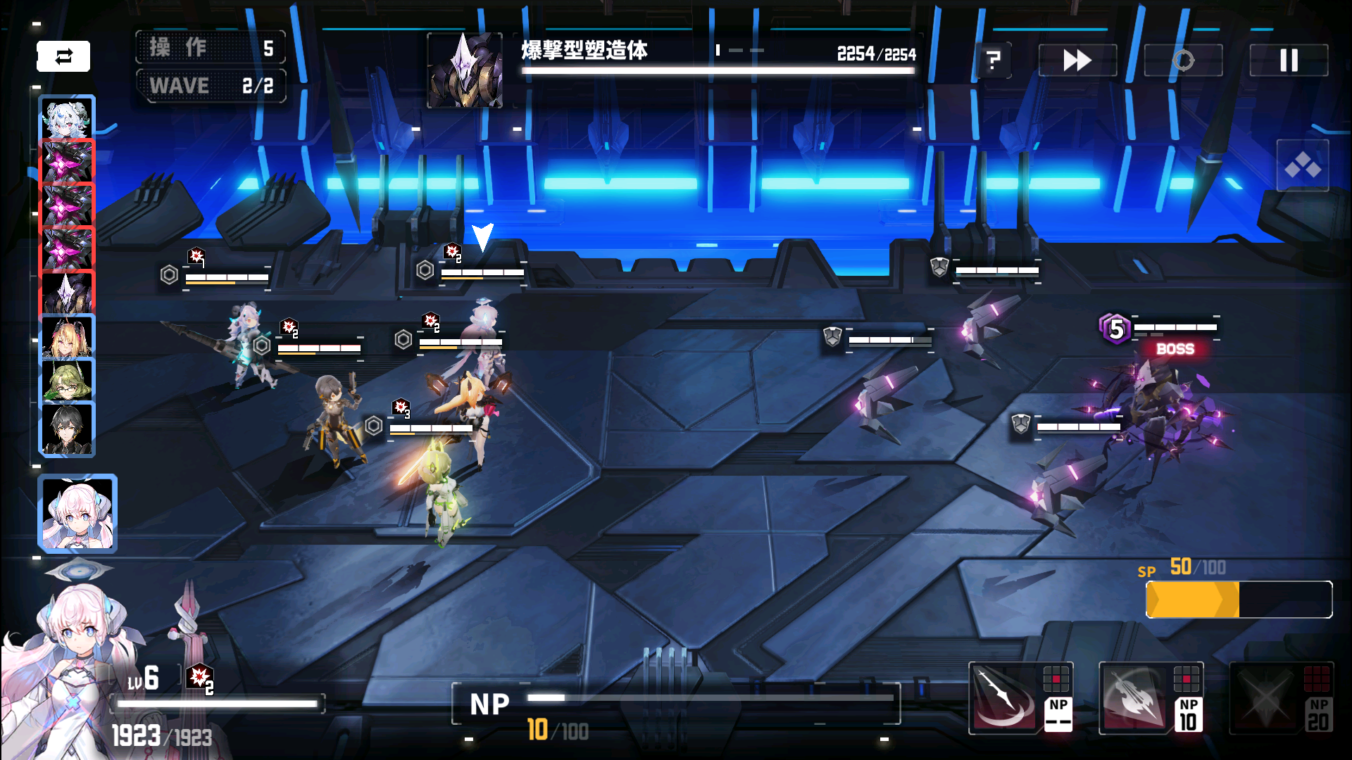 3×3のマスで行われるターン制バトルは、見た目以上に戦略性が高いんですよ。キャラクターごとのスキル構成や、スキルを使うためのNP管理が本当に大事なんです。