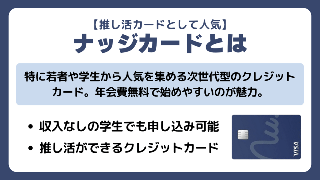 最近、SNSとかでも「推し活に最高!」って話題のナッジカード。クレジットカードって聞くと、なんだか大人なイメージでちょっとドキドキしちゃいますよね。でも、このナッジカードは学生さんや初めての人でも安心して使える工夫がいっぱいなんです!